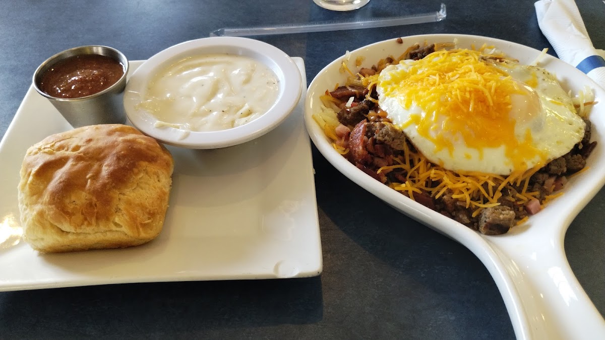 Ham Sausage Omelette w Hash Browns&Biscuits&Gravy